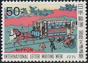Late Edo- and Meiji-era printmaker and illustrator. Principal illustrator and drawer for Tokyo nichinichi shinbun. His most common signatures were Keisai Yoshiiku and Ikkeisai Yoshiiku. Other names included Utagawa Yoshiiku, Ochiai Ikujiro, Chokaro, Sharakusai [Sairakusai], and Keiami. Yoshiiku was the Edo-born son of the proprietor of a teahouse in the Yoshiwara entertainment district. He was apprenticed to a pawnshop but then became a pupil of the woodblock drawer Utagawa Kuniyoshi (1797-1861), hence some of Yoshiiku's other names. One student of Yoshitoshi later wrote that Yoshiiku bullied the somewhat younger Yoshitoshi, who the aging Kuniyoshi treated like a son. Whether or not this allegation has any foundation, there would have been a natural rivalry between two drawers, particlarly coming up in the same school, and competing for the master's (and later society's) recognition. In the late 1860s, Yoshiiku and Yoshitoshi collaborated on the production of the Eimei nijuhasshuku series. And throughout the next two decades, they often shared the same writers and publishers. It was not the sort of world in which they could have let whatever bitterness might have come between them at times to get in the way of their work. See translation-in-progress of Higuchi Futaba on Ochiai Yoshiiku for more information on Yoshiiku's life. Yoshiiku achieved philatelic immortality in 1970 when the Emirate of Ajman, in commemoration of Expo '70 Osaka, issued a set of ukiyoe stamps, including a 12-ri airmail stamp on a miniature sheet showing part of Yoshiiku's Kurabekoshi Yuki no Yanagi Yu (Women in a Public Bathhouse). (WW) |